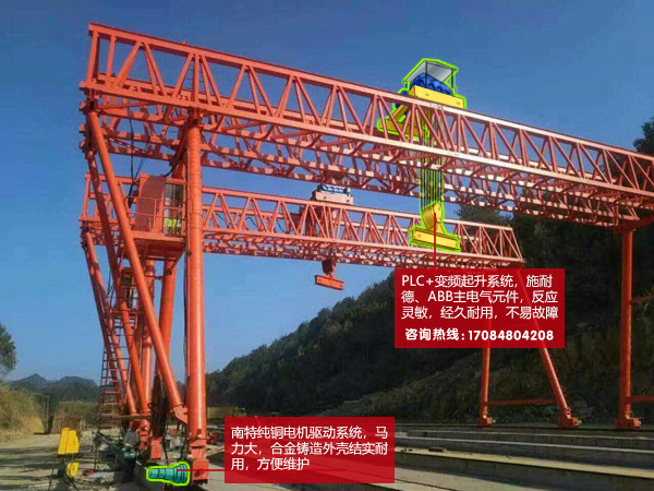 广东江门轮胎式提梁机厂家很多时候我们如果想要选择100吨提梁机,很大部分应该是我们需要提取的货物比较重,所以在运行的时候,为了能满足我们的需求,而选择了这款设备。